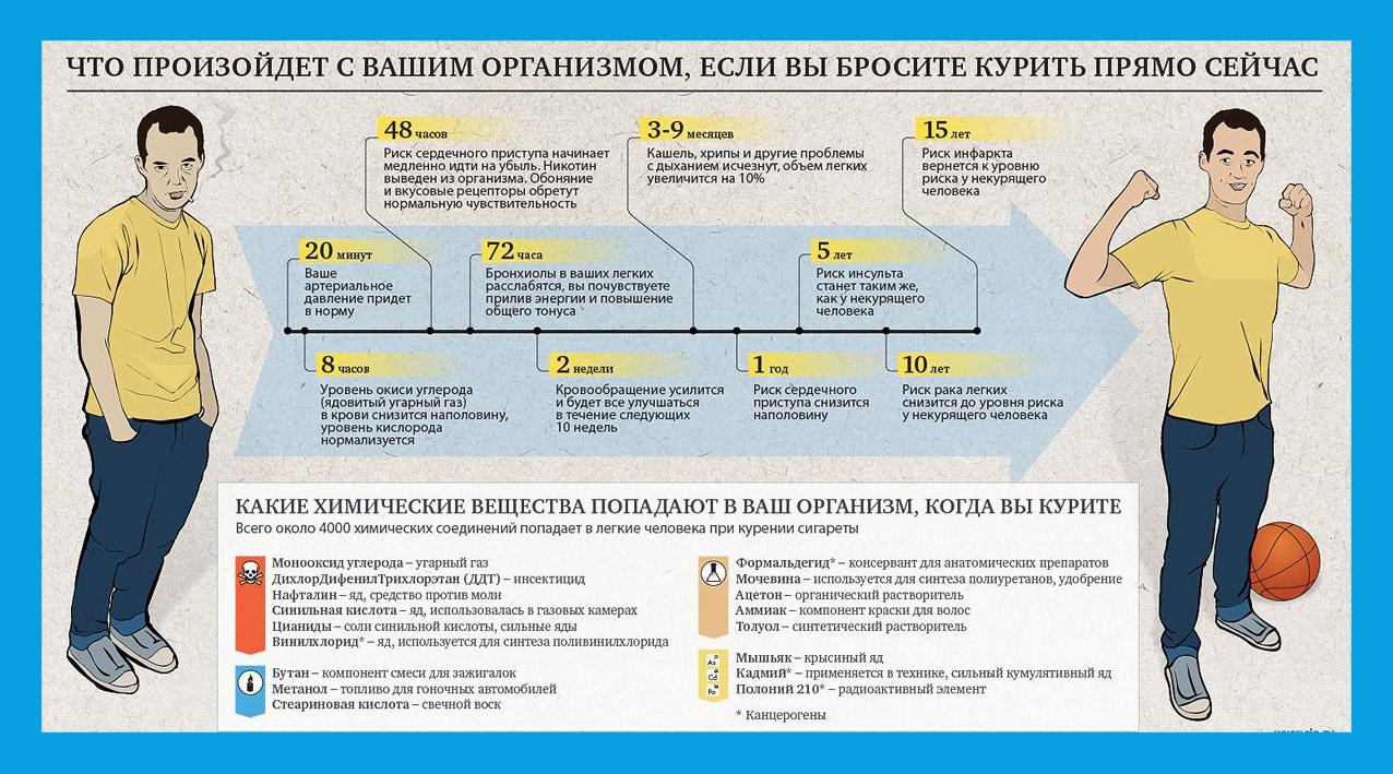Вскоре после отказа от курения у людей снижается частота сердечных сокращений, снижается уровень токсичного угарного газа и улучшается функция легких.