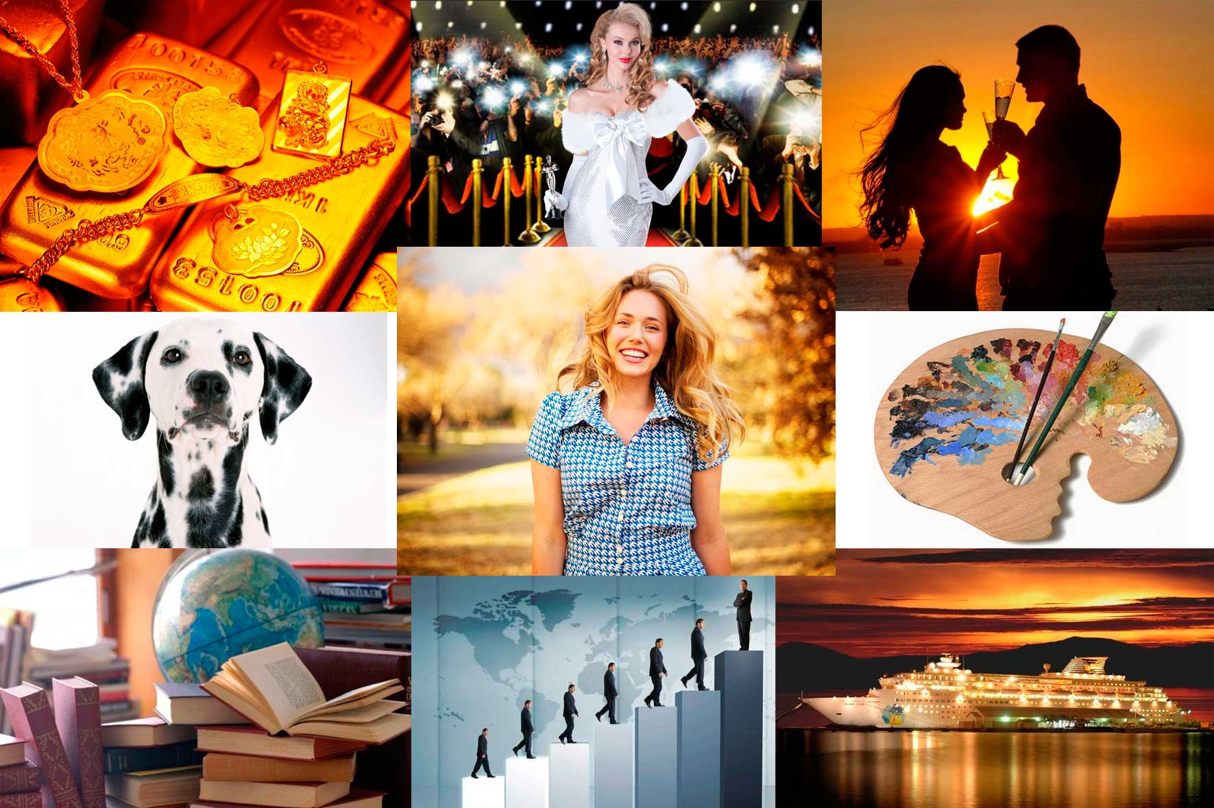 Что вы хотите сделать, так это собрать изображения предметов, которые вы хотите иметь в своей жизни, например, новую машину, ваш новый дом, идеальную девушку или парня, возможно видение того большого толстого чека, который вы хотите получить.Выигрышный лотерейный билет?