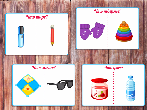 - Игра «Что каким бывает?» Вы задаете ребенку несколько вопросов, а он должен дать на них ответы. Примеры вопросов: «Что бывает синим?», «Что бывает широким?», «Что бывает гладким?», «Что бывает мокрым?» и т.д. Когда ребенок освоится в этой игре, попросите его самого задавать вам вопросы.