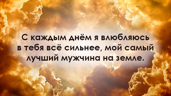 - Моё солнышко самое яркое, самое светлое, самое радостное, самое любимое. Ты — моя сладость и моё наслаждение, ты — мой океан и мой космос, ты — моё вдохновение и моя осуществлённая мечта. В тебе таится невероятная сила, которая влечёт меня за тобой, твоя красота, твоя душа, твоя улыбка открывают для меня целый мир — мир счастья и чудес. Я тебя люблю и буду любить вечно.