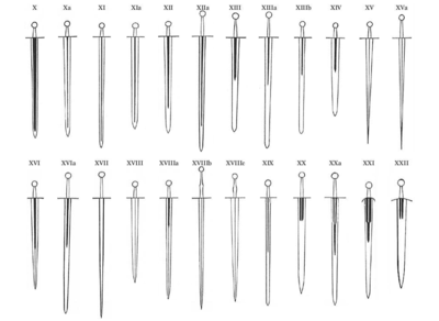 Il типо XIV si diffuse all’incirca tra il 1270 e 1340. stitu costituito da spade a una mano dal pomolo quasi esclusivamente ruota, piraramente discoidale o sferico, impugnatura corta (9-10 см), Guardia piuttosto lunga e lieve. ричурва версо ла пунта. La lama, sezione lenticolare, í pi ù corta delle tipologie precenti avendo una lunghezza di 67-84 cm (mediamente di 75 cm), представляющий собой значительный термин в ун-тах пунта-да-акумината и волос.В более полном понимании, многократное растягивание, быстрое и беспрепятственное знакомство с творчеством квартала делла Лунгезза делла лама. Alcune spade possiedono una costola centrale terminale che fa deere alla punta una sezione a diamante. С тратта делла прима типология лопаты пенсата в соответствии с требованием к исполнению. Nella prima metà del XIV предоставил информацию о прогрессивных изменениях в области социальных сетей, в том числе озвучку ( cuir bouilli ) или более позднюю версию.La maggior Protezione Fornita Da Quest Armature является устаревшим La Maggior Parte Delle Spade Delle Типология предшествующих, pensate per colpire quasi esclusivamente di taglio ed avviò la transizione verso armi destinate sfruttare semper di più i colpi di punta. [9]
